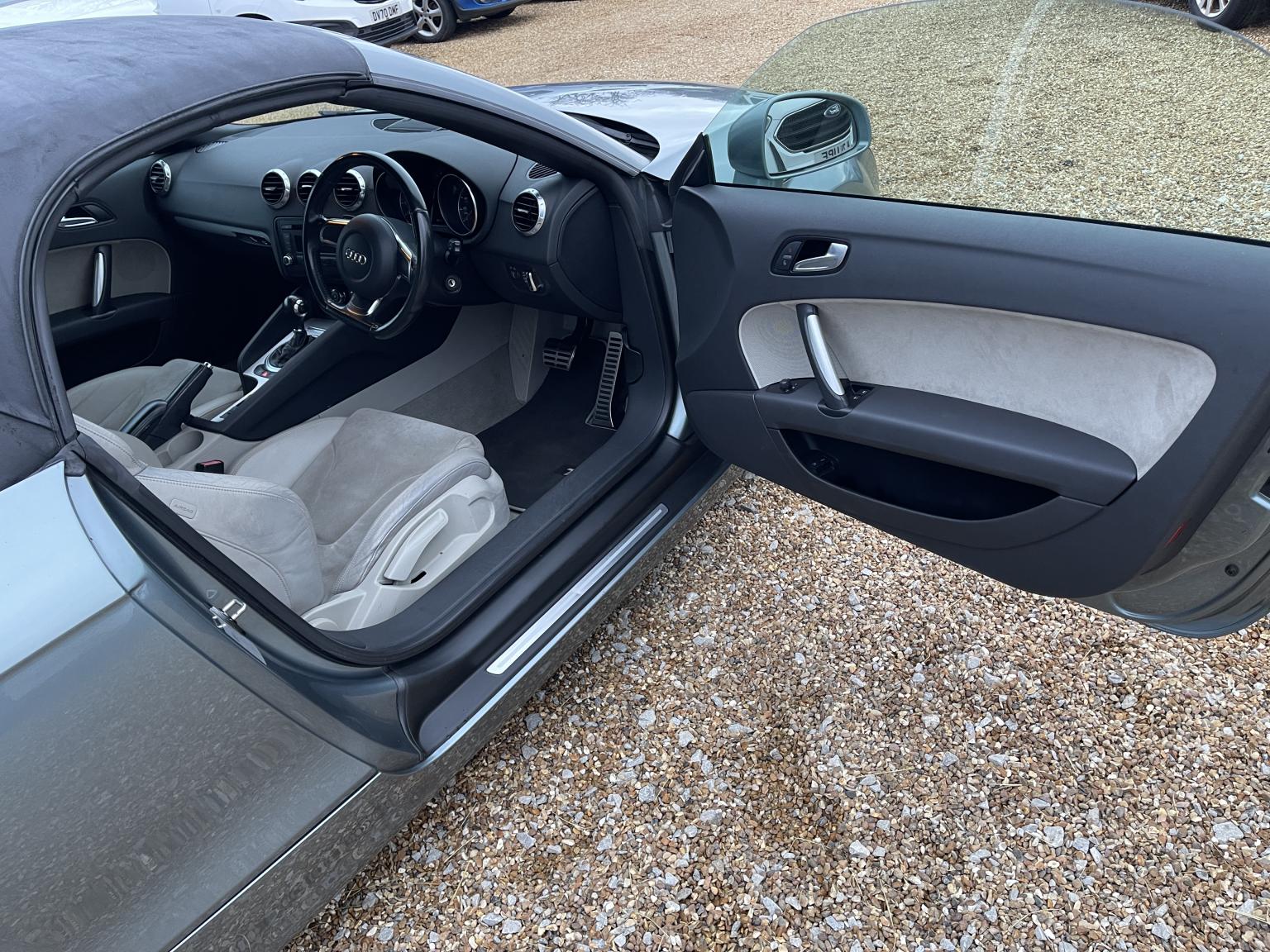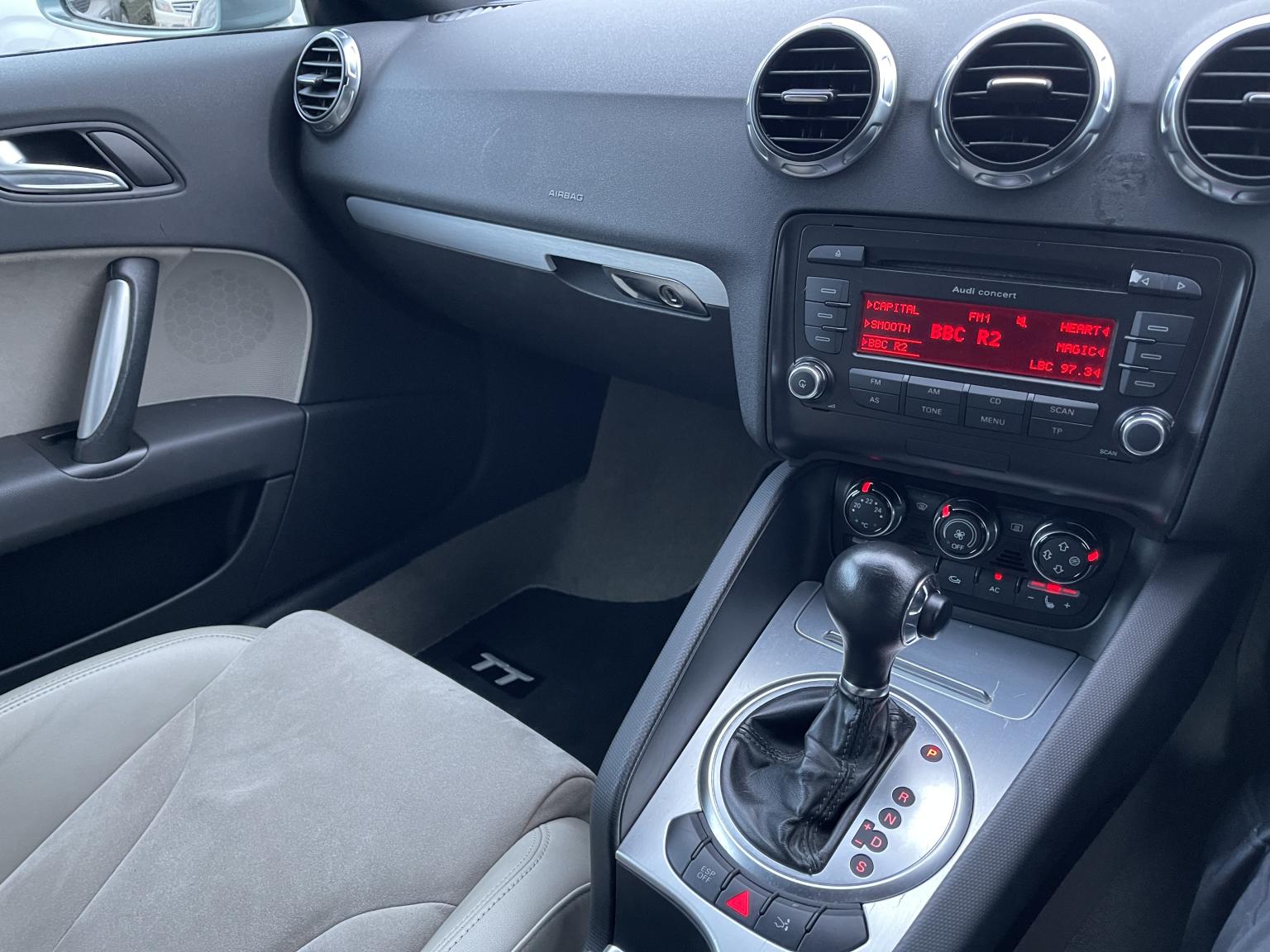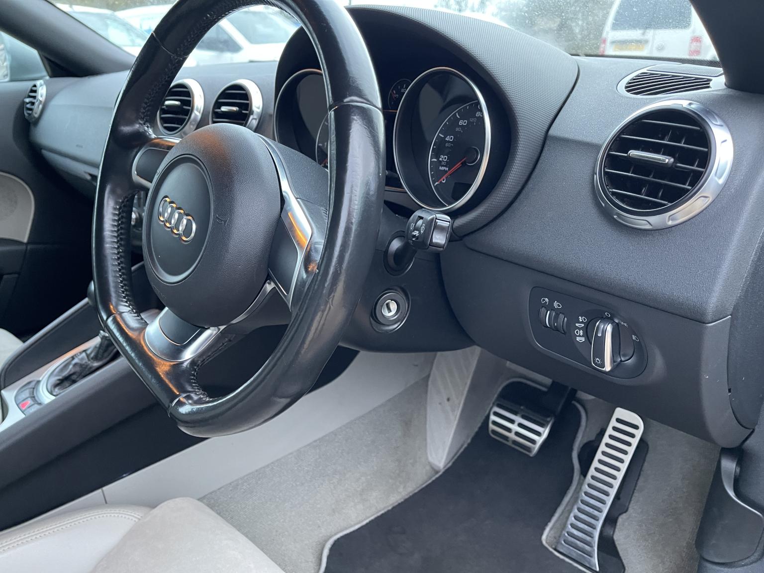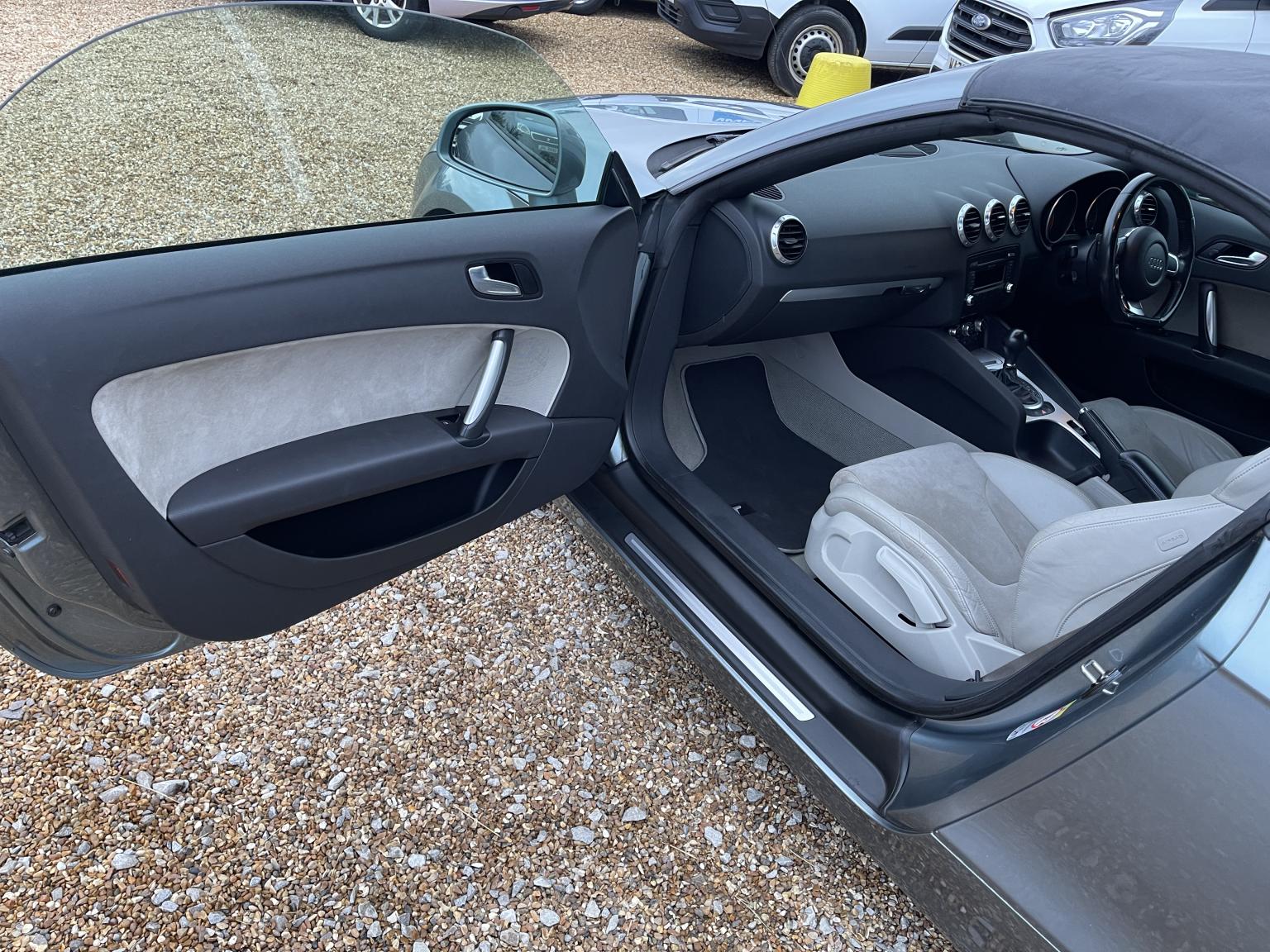 The second-generation TT's design remains a masterpiece, and this Roadster variant amplifies its appeal. The sleek Grey paintwork accentuates the car's muscular haunches and iconic silhouette. It rides on stylish 17-inch 'Trapez' alloy wheels, which perfectly complement the sporty stance. The fully automatic dark grey fabric hood is in excellent condition, retracting quickly to let you enjoy the sun and the soundtrack of that turbocharged engine. Twin aluminium rollover protection hoops add both safety and a classic roadster aesthetic.